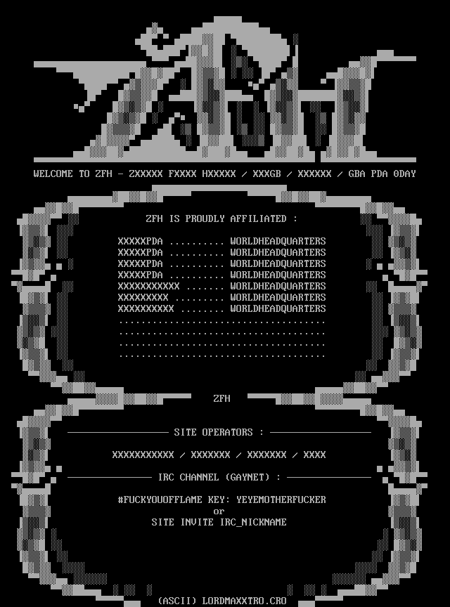 WELCOME TO ZFH - ZXXXXX FXXXX HXXXXX / XXXGB / XXXXXX / GBA PDA 0DAY