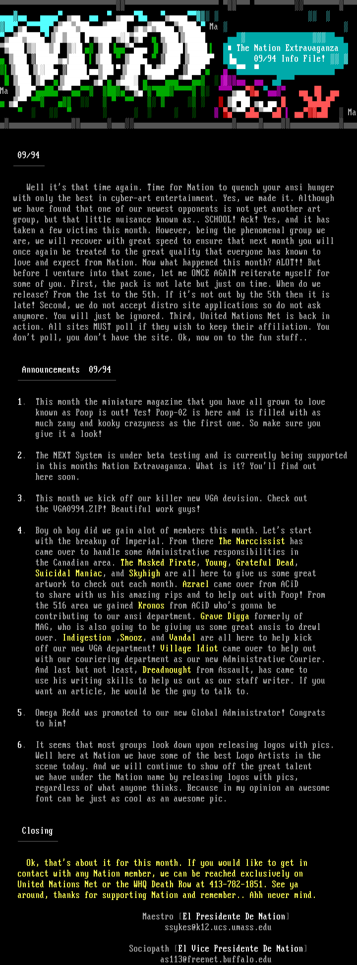 United Nations Net or the WHQ Death Row at 413-782-1851. See ya