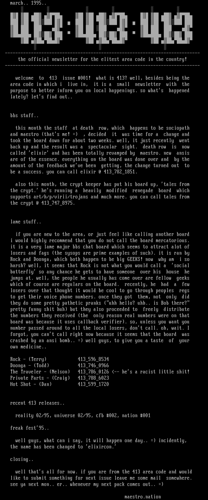 well thats all for now. if you are from the 413 area code and would