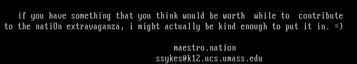 to the natiOn extravaganza, i might actually be kind enough to put it in.