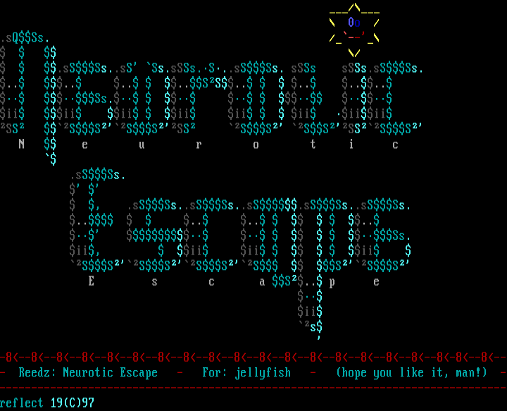 -8--8--8--8--8--8--8--8--8--8--8--8--8--8--8--8--8--8-8--8--- Reedz: Neurotic Escape - For: jellyfish - hope you like it, man! ---------------------------------------------------------------------------------reflect 19C97