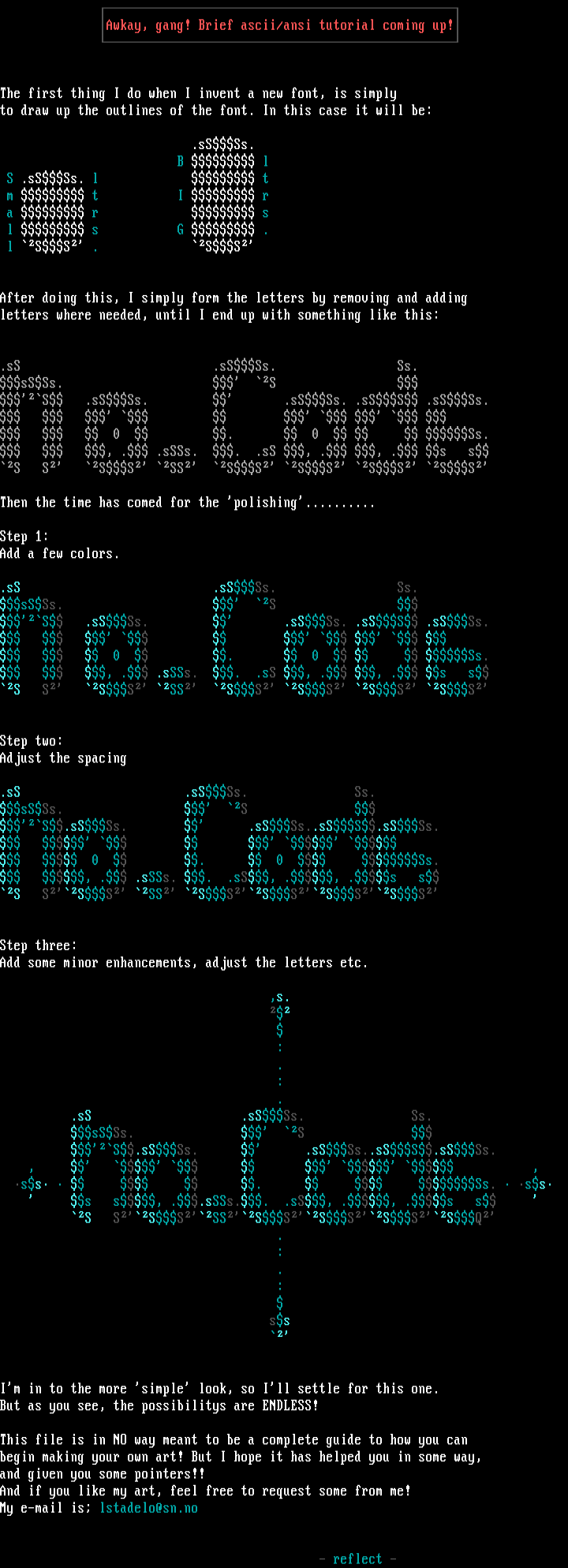 Awkay, gang! Brief ascii/ansi tutorial coming up!