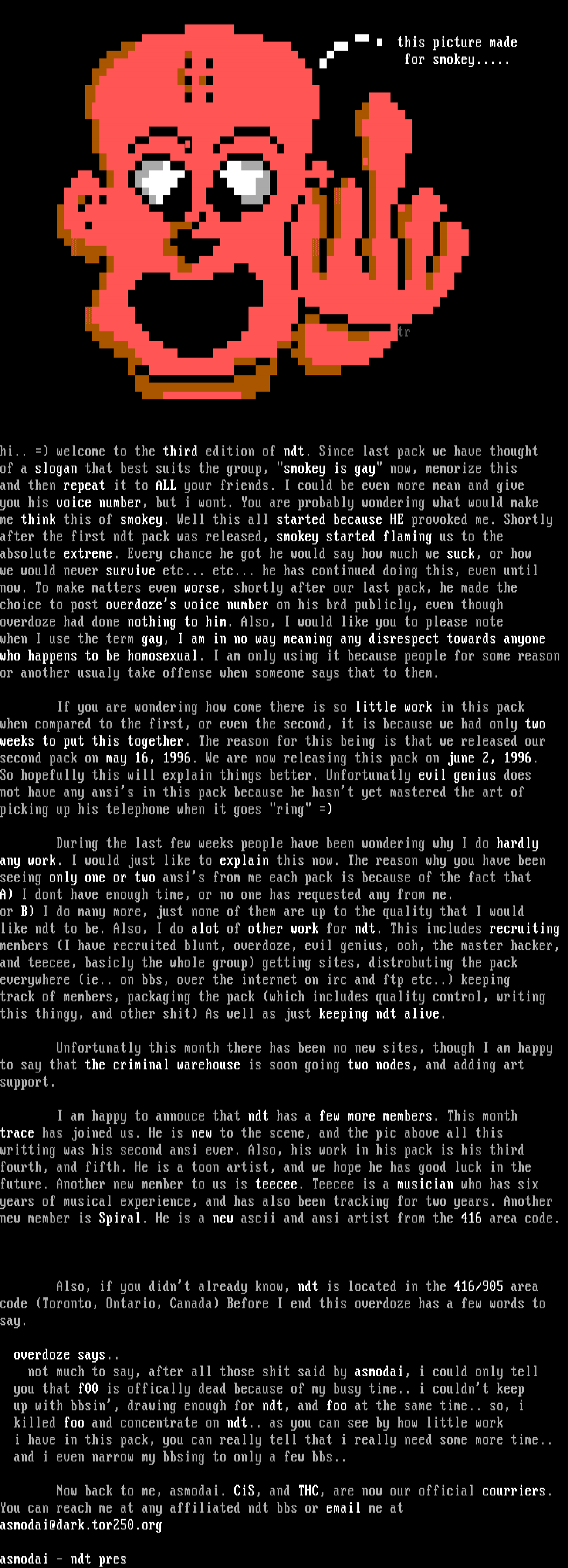 me think this of smokey. Well this all started because HE provoked me. Shortly after the first ndt pack was released, smokey started flaming us to the