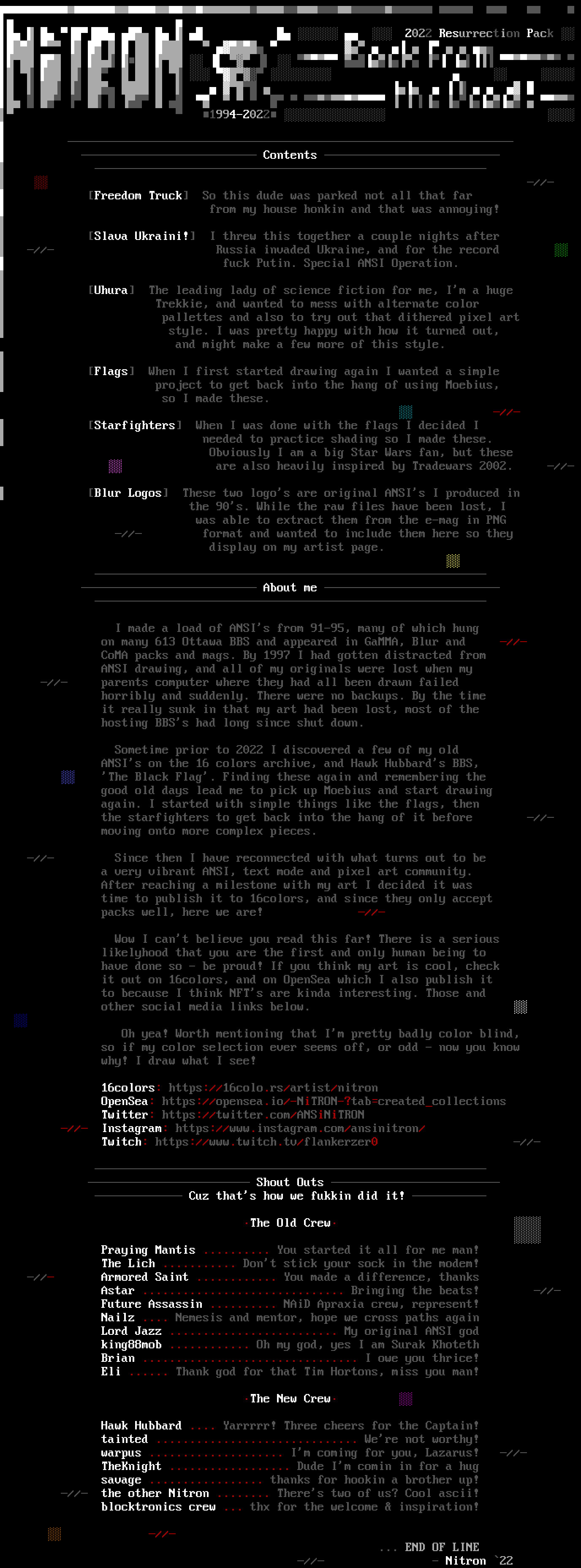 ANSIs on the 16 colors archive, and Hawk Hubbards BBS,