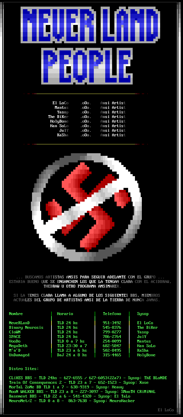 ACTUALES DEL GRUPO DE ARTISTAS ANSI DE LA TIERRA DE NUNCA JAMAS.