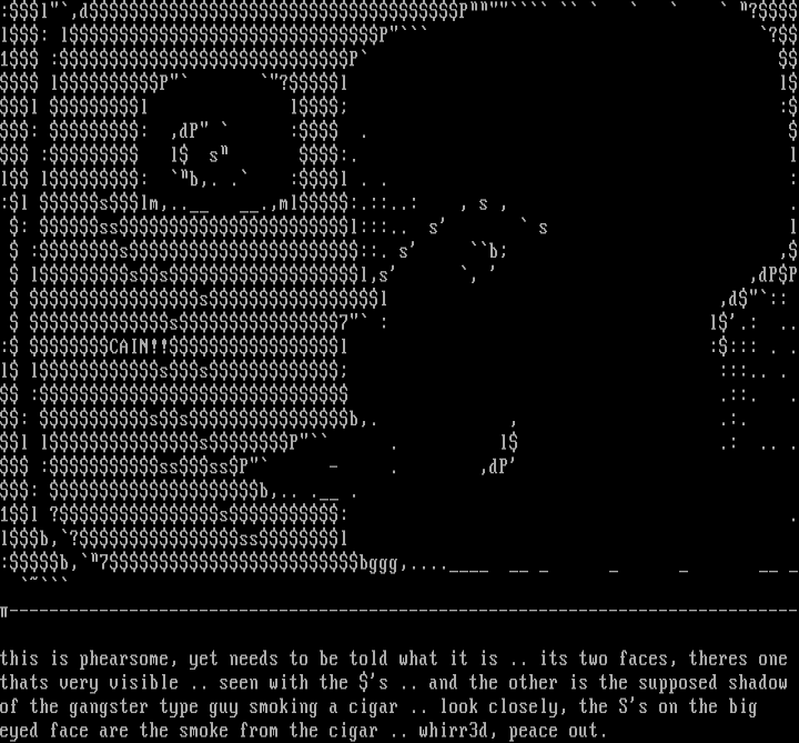 eyed face are the smoke from the cigar .. whirr3d, peace out.