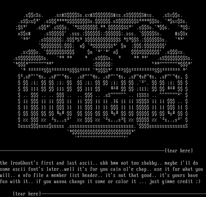 the IronGhosts first and last ascii.. uhh hmm not too shabby.. maybe ill do