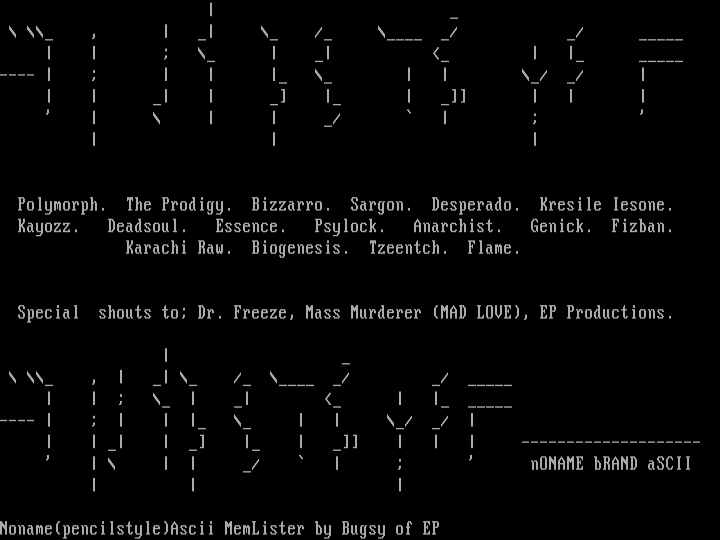 NonamepencilstyleAscii MemLister by Bugsy of EP