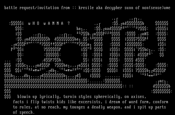 battle request/invitation from :: kresile aka decypher sunn of nonsenseame