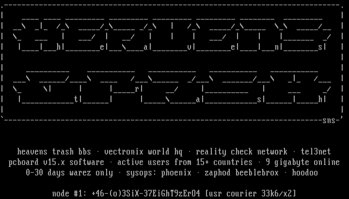 heavens trash bbs vectronix world hq reality check network tel3net