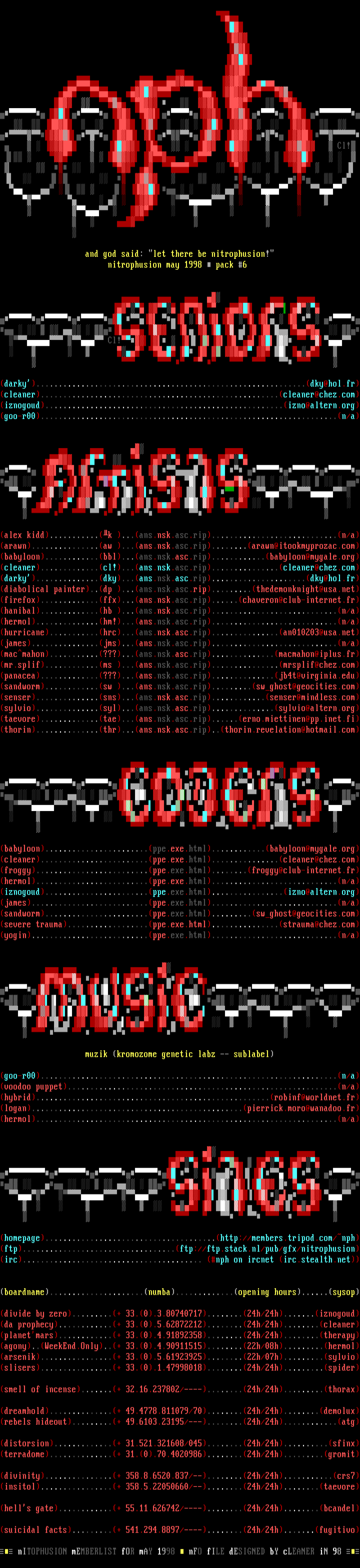 homepage......................................http://members.tripod.com/nphftp..................................ftp://ftp.stack.nl/pub/gfx/nitrophusionirc........................................ nph on ircnet irc.stealth.net