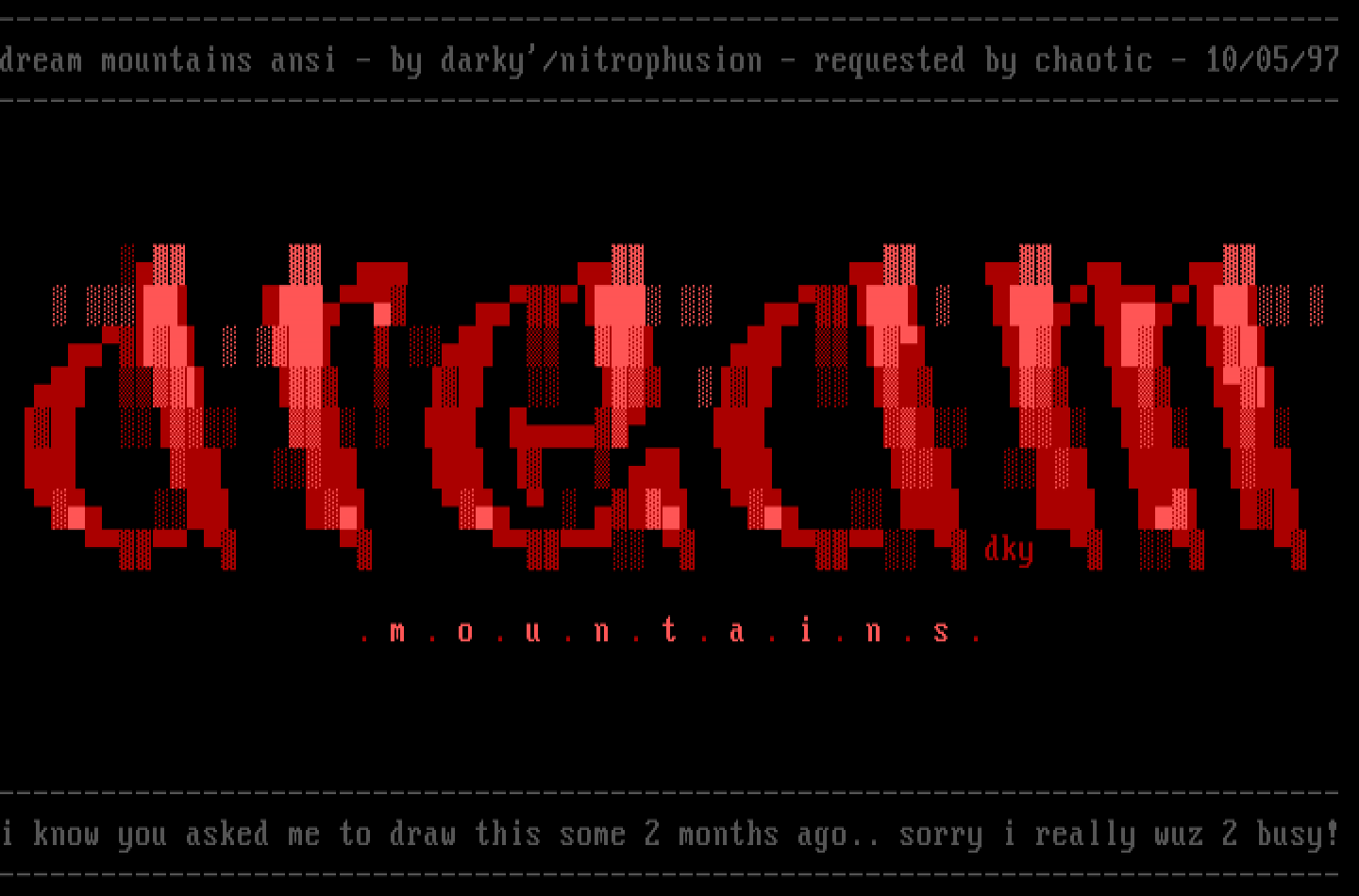dream mountains ansi - by darky/nitrophusion - requested by chaotic - 10/05/97