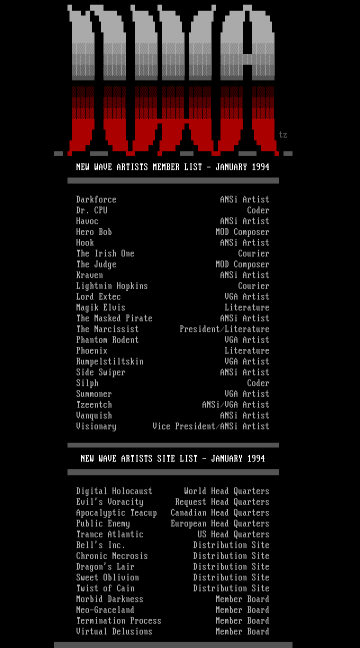 NEW WAVE ARTISTS SITE LIST - JANUARY 1994