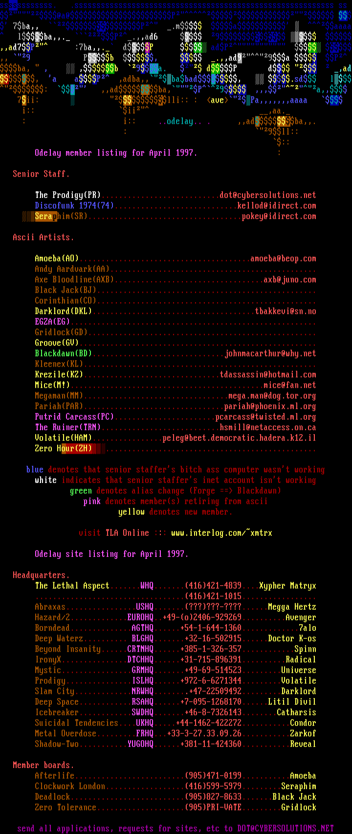 Odelay member listing for April 1997.