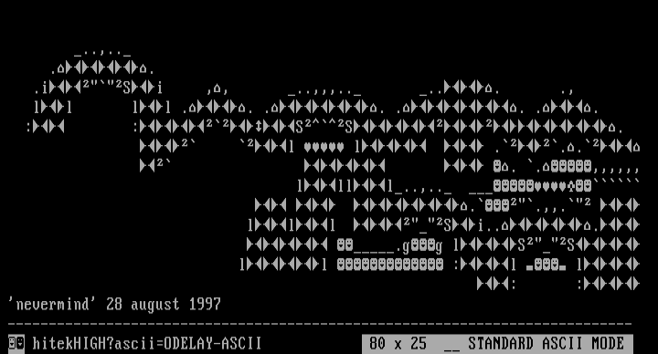 hitekHIGH?asciiODELAY-ASCII 80 x 25 STANDARD ASCII MODE
