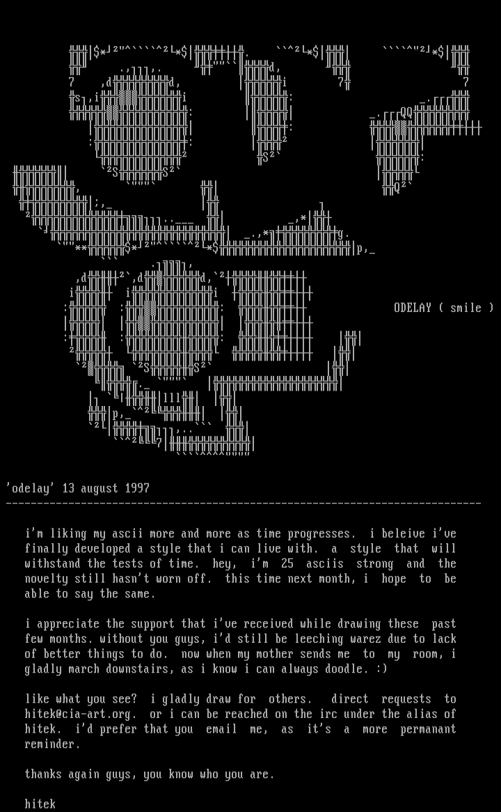 hitek@cia-art.org. or i can be reached on the irc under the alias of