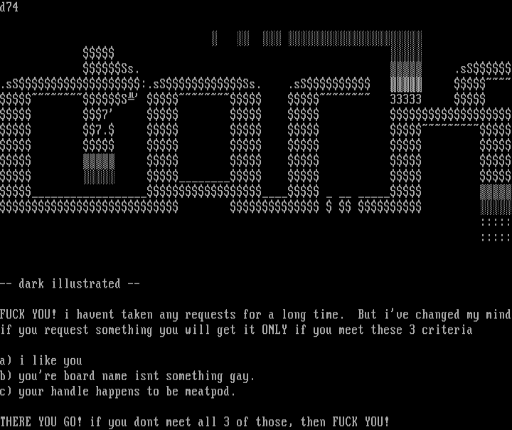 FUCK YOU! i havent taken any requests for a long time. But ive changed my mindif you request something you will get it ONLY if you meet these 3 criteria