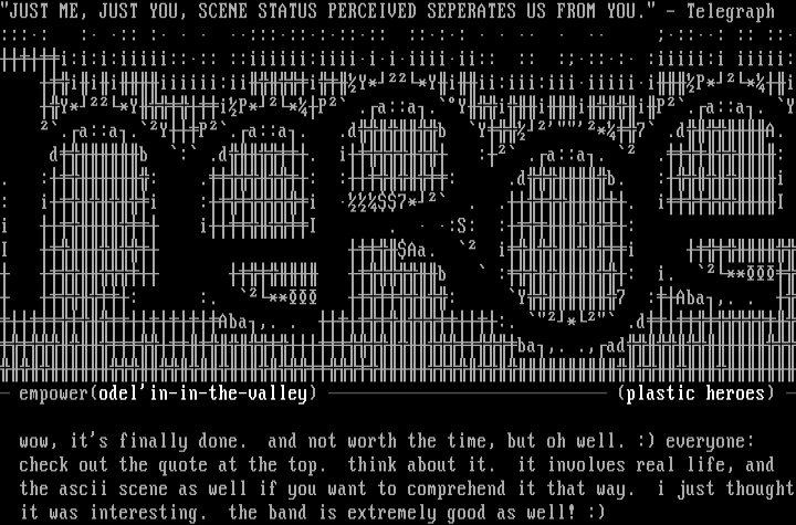 the ascii scene as well if you want to comprehend it that way. i just thought it was interesting. the band is extremely good as well! :