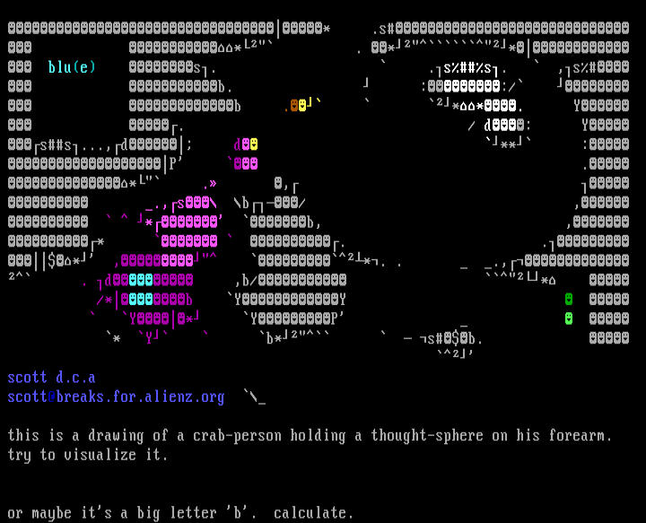 this is a drawing of a crab-person holding a thought-sphere on his forearm.