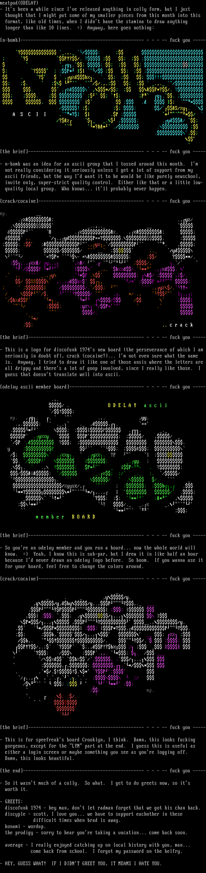 odelay ascii member board----------------------------- - - - -- fuck you -----