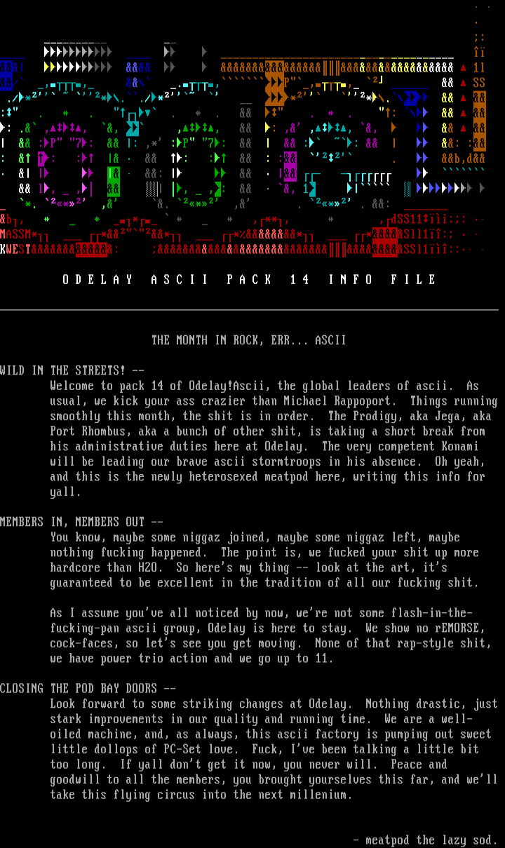 fucking-pan ascii group, Odelay is here to stay. We sho
