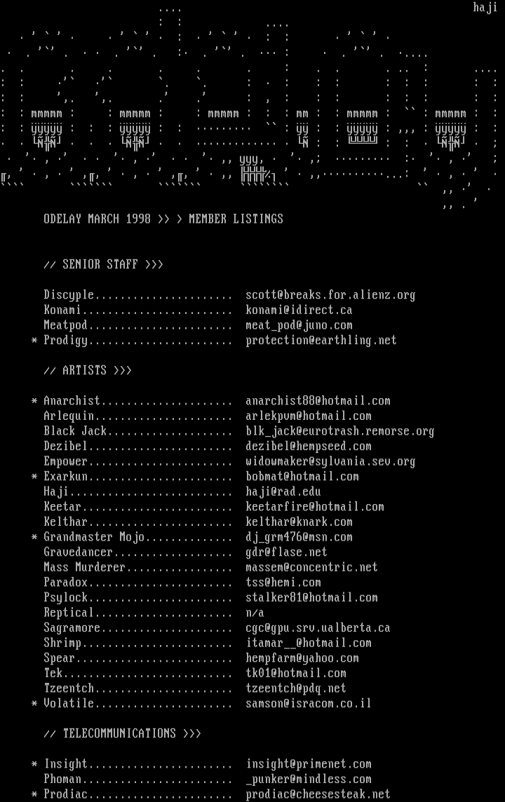 ODELAY MARCH 1998 MEMBER LISTINGS