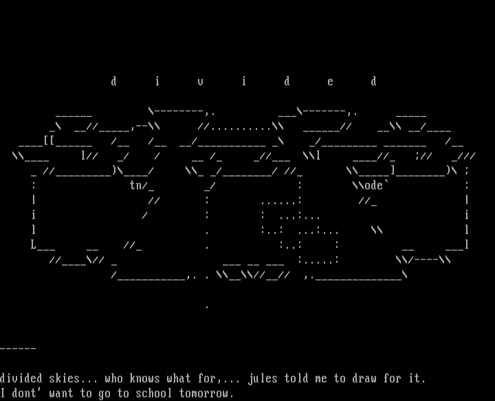 divided skies... who knows what for,... jules told me to draw for it.
