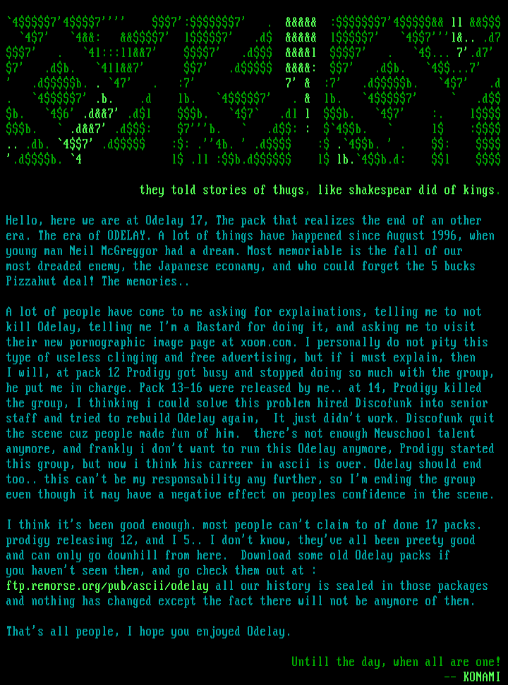 ftp.remorse.org/pub/ascii/odelay all our history is sealed in those packages