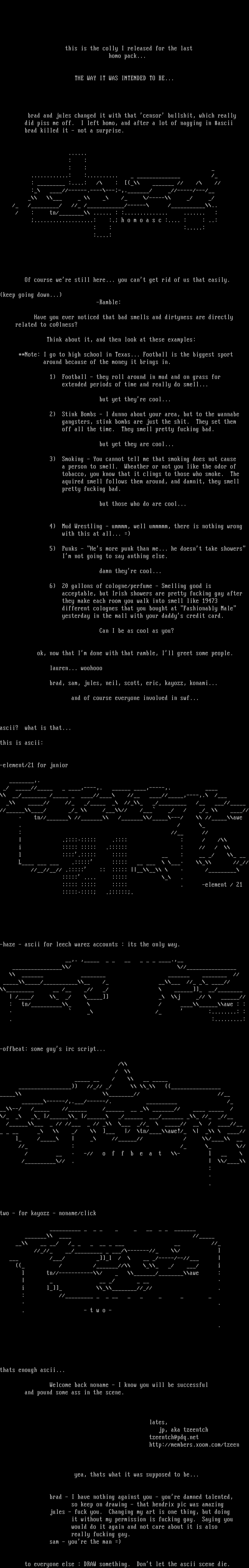 did piss me off. I left homo, and after a lot of nagging in ascii