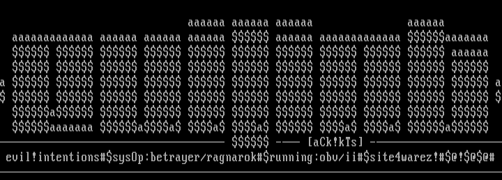 - -- aCk!kTs - evil!intentionssysOp:betrayer/ragnarokrunning:obv/iisite4warez!@!@@