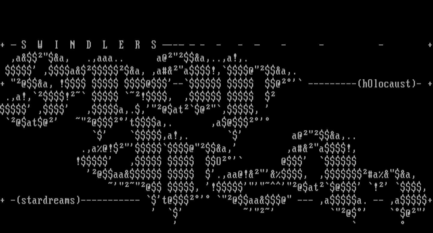 + S W I N D L E R S -- - - - - - - + ,aa, .,aaa.. a@a,..,a!,.