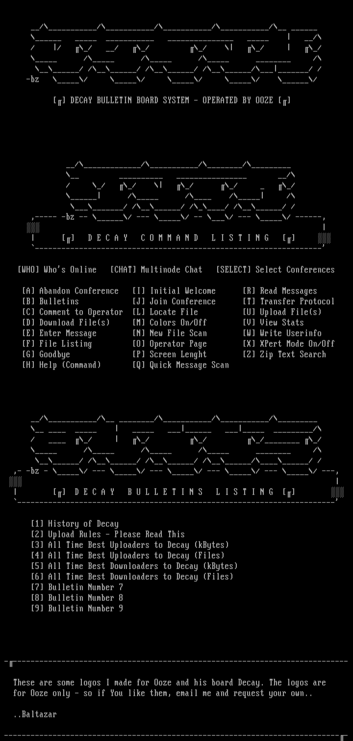 DECAY BULLETIN BOARD SYSTEM - OPERATED BY OOZE