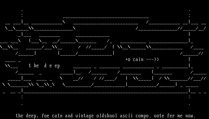 the deep, foe ca1n and vintage oldskool ascii compo. vote fer me now.
