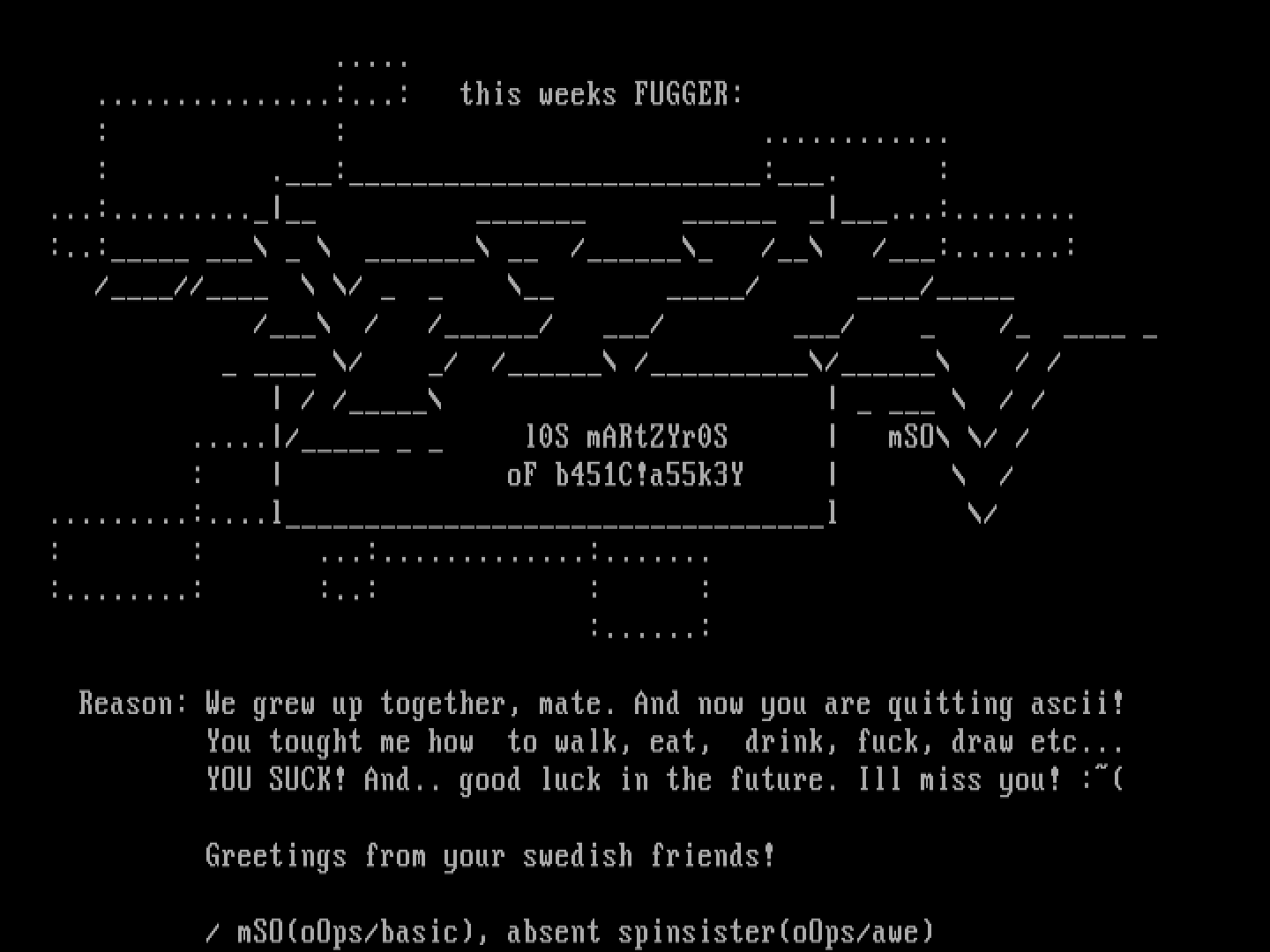 Reason: We grew up together, mate. And now you are quitting ascii!