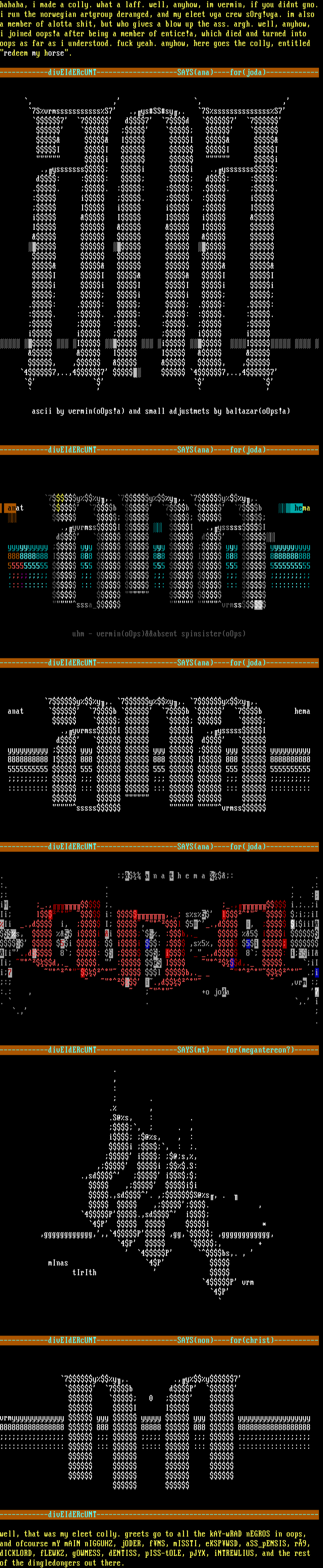 hahaha, i made a colly. what a laff. well, anyhow, im vermin, if you didnt gno. i run the norwegian artgroup deranged, and my eleet vga crew sOrg!vga. im also