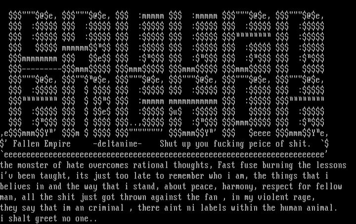 Fallen Empire -deltanine- Shut up you fucking peice of shit.