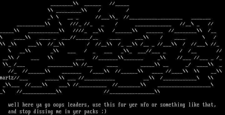 well here ya go oops leaders, use this for yer nfo or something like that,