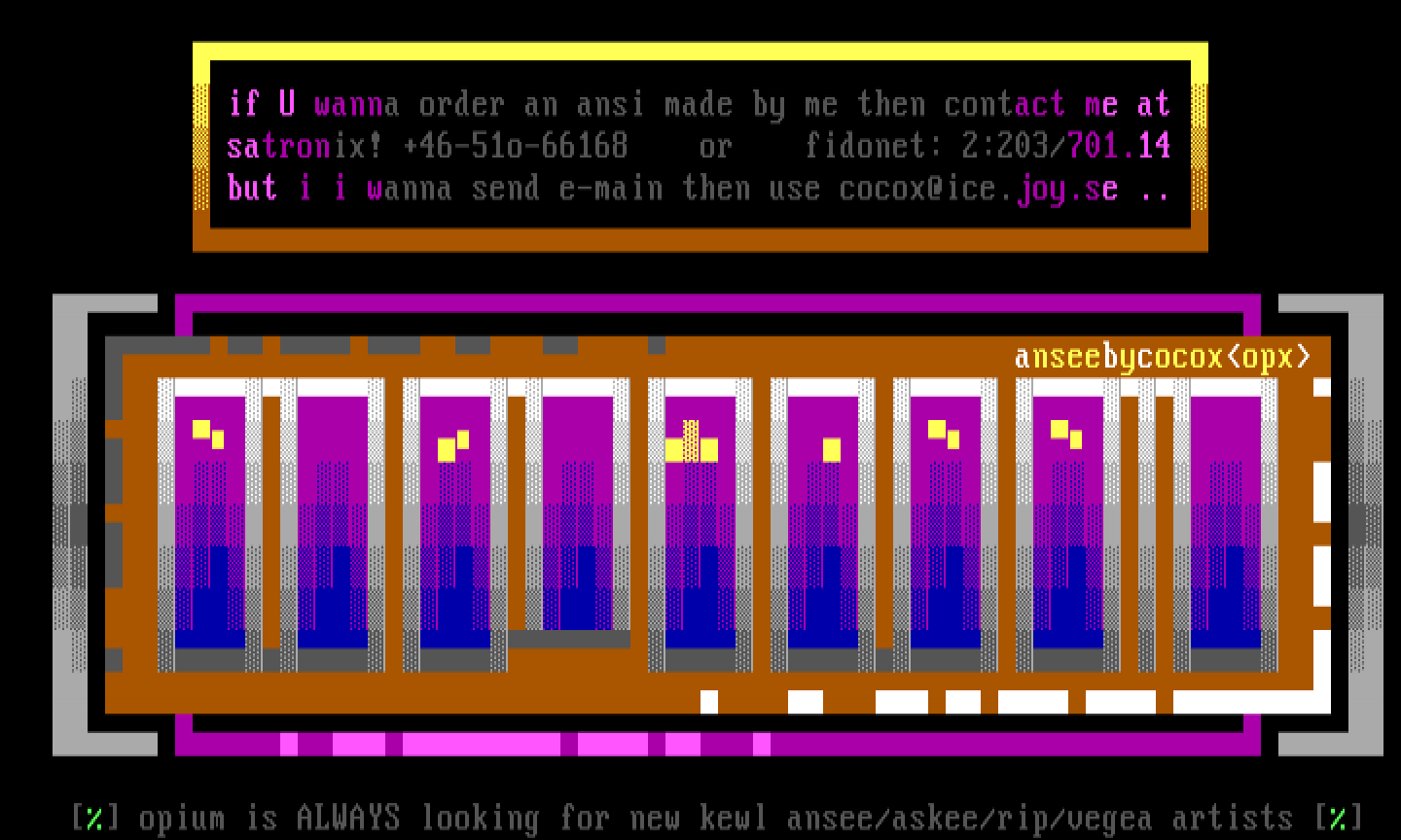 opium is ALWAYS looking for new kewl ansee/askee/rip/vegea artists