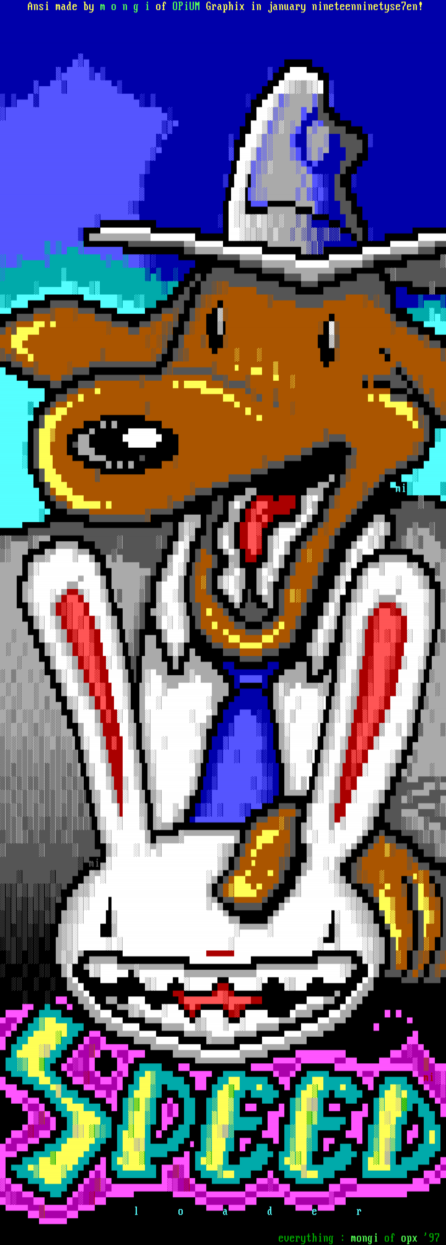 Ansi made by m o n g i of OPiUM Graphix in january nineteenninetyse7en!