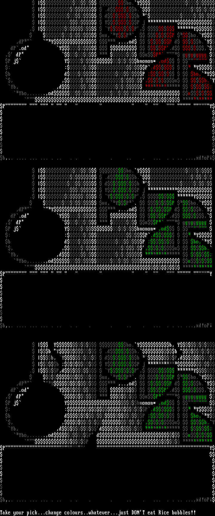 Take your pick...change colours..whatever...just DONT eat Rice bubbles!!