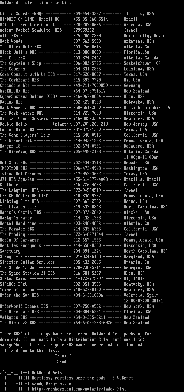 UnderWorld Dreams BBS --------- 607-756-0562 -------- New York, USA