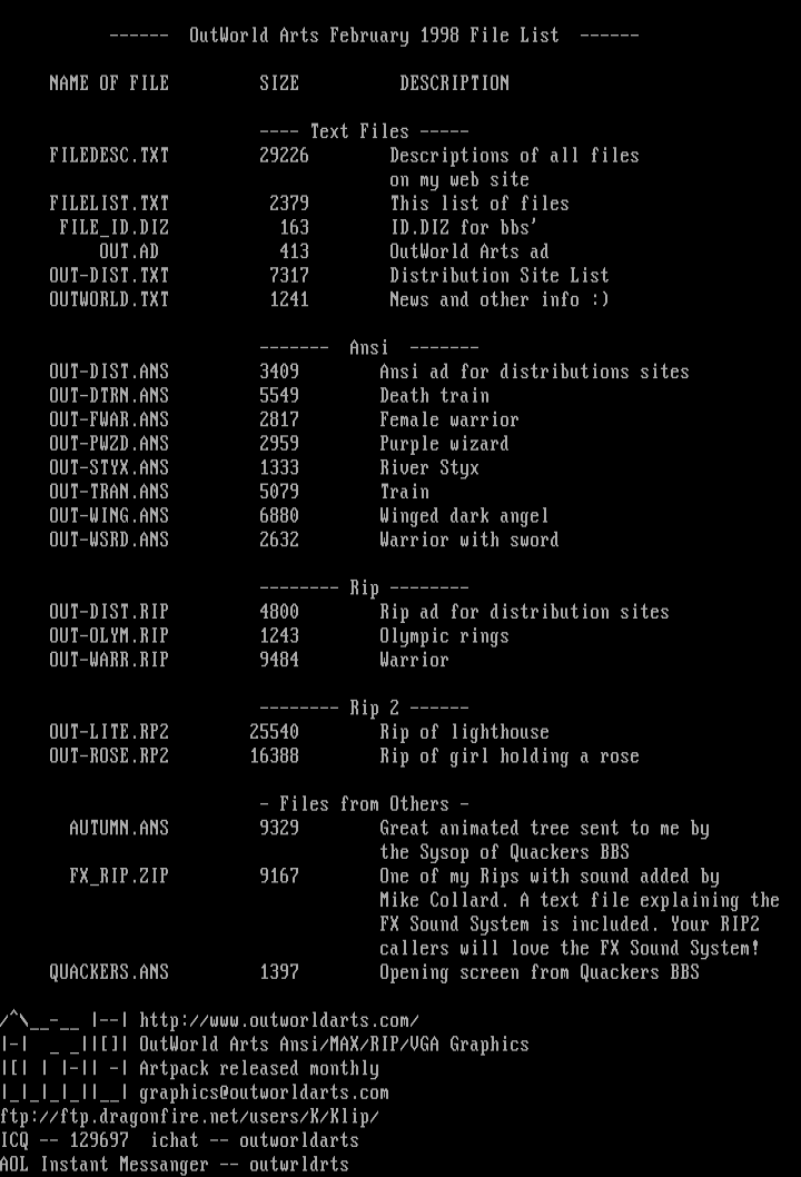 - OutWorld Arts Ansi/MAX/RIP/VGA Graphics