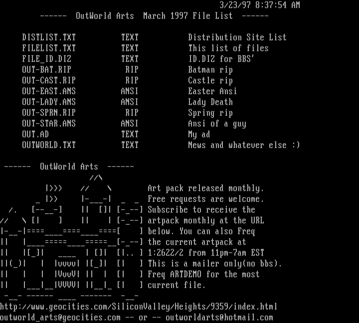 ------ OutWorld Arts March 1997 File List ------
