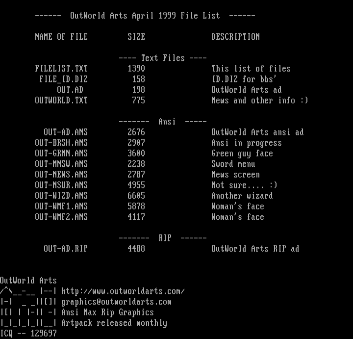 OUT-AD.ANS 2676 OutWorld Arts ansi ad