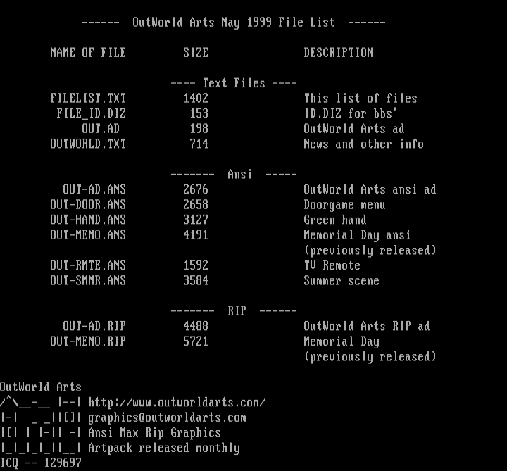 OUT-AD.ANS 2676 OutWorld Arts ansi ad