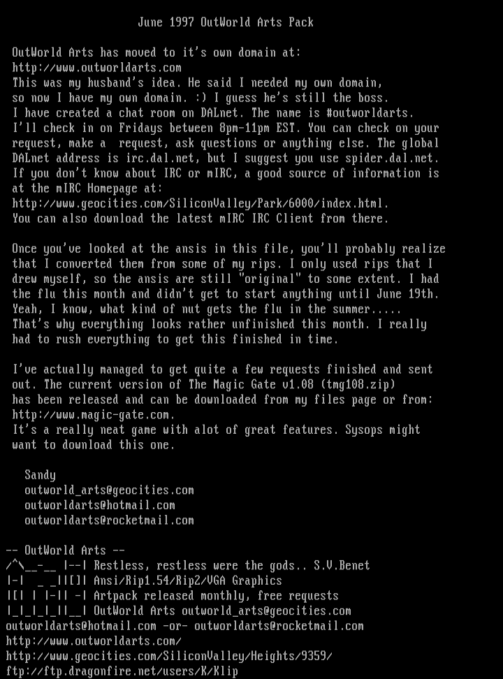June 1997 OutWorld Arts Pack