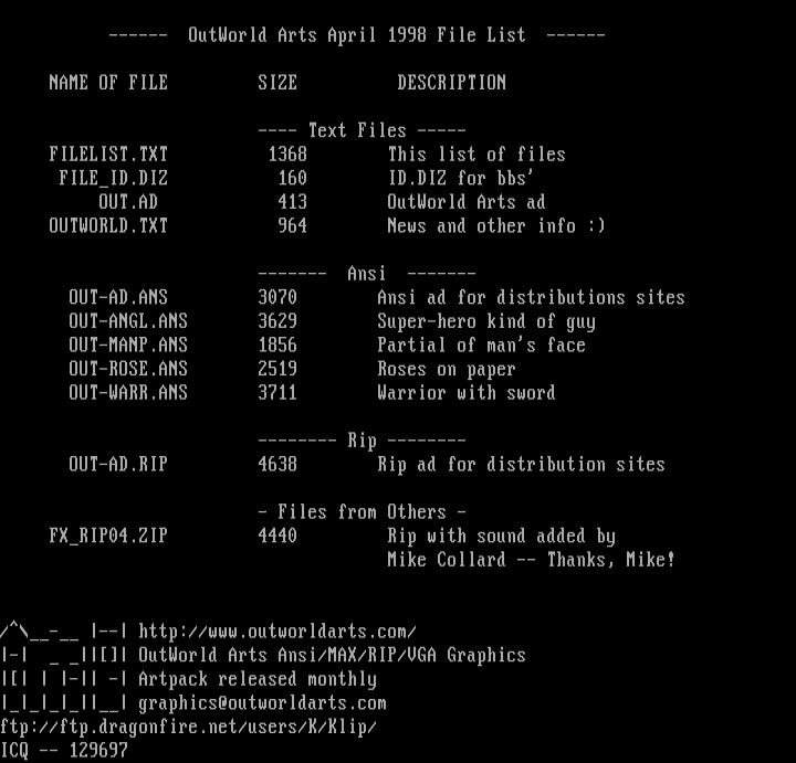- OutWorld Arts Ansi/MAX/RIP/VGA Graphics