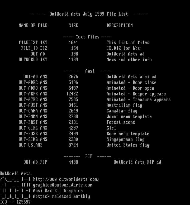 ------ OutWorld Arts July 1999 File List ------