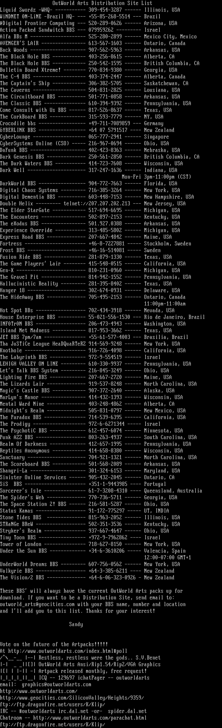 - OutWorld Arts Ansi/Rip1.54/Rip2/VGA Graphics