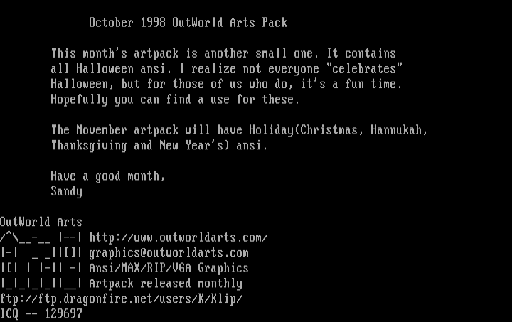 October 1998 OutWorld Arts Pack